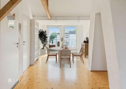 Mit ihren 66 Quadratmetern ist diese charmante Dachgeschosswohnung ein echtes Stauraumwunder. Ungewöhnlich und modern geschnitten, mit fast schon Loft-Charakter, entstehen hier Offenheit, Licht und ein gemütliches Wohngefühl.