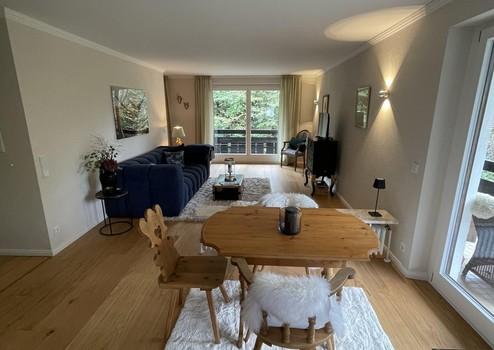 Hochwertig möbliert. Einbauküche mit Bora Muldenkochfeld. Boxspringbett 1.60x 2.00. Parkettböden, Bad Fliesen/ Fußbodenheizung, Duschbad.