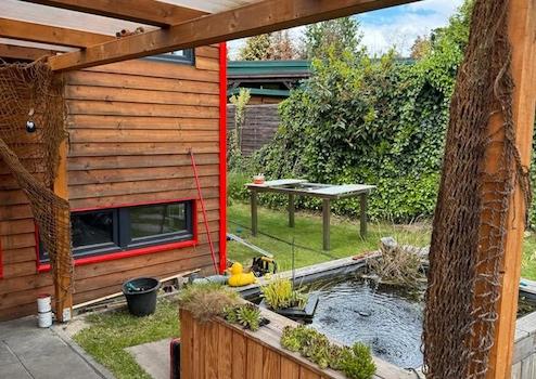 Ein separates Gebäude mit ca. 25 m² dient als Hobby- oder Stauraum. Das Objekt steht auf Erbpachtgrund (jährlich 2.560 € inkl. Gebühren), der Vertrag läuft bis 2072. Wichtig: Nur als Zweitwohnsitz nutzbar, gewerbliche Nutzung ist nicht gestattet.