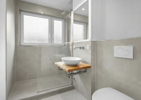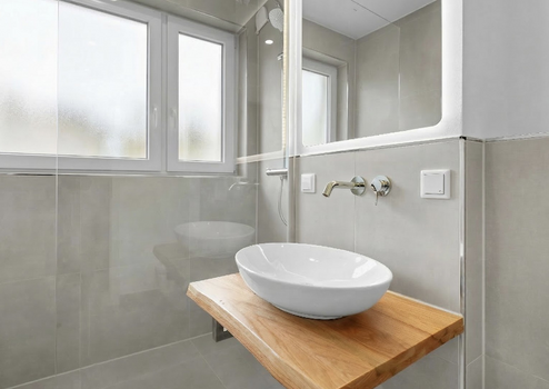 - saniertes Badezimmer mit begehbarer Rain Shower Dusche mit Glaselement