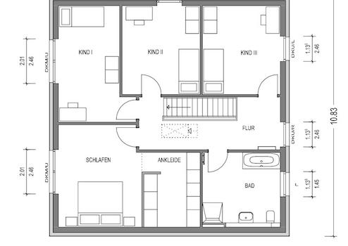 Hier wurde an alles gedacht, was modernes Familienleben ausmacht. Während die Kinder in den hellen Zimmern im Obergeschoss ihr eigenes Reich finden, bietet das großzügige Erdgeschoss mit seiner markanten Übereck-Verglasung den perfekten Rahmen für gemeinsame Abende. Es ist ein Haus, das mit der Zeit geht: Im Sommer genießen Sie die sanfte Kühlung über den Boden, während die eigene Photovoltaikanlage auf dem Dach für ein gutes Gefühl bei der Energiebilanz sorgt.