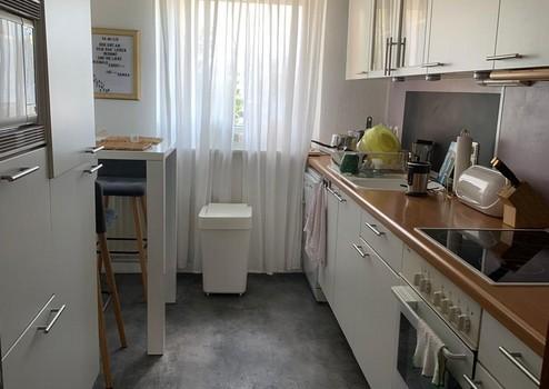Das Herzstück der Wohnung bildet eine Einbauküche mit praktischen Elektrogeräten – ideal für alle, die Kochen und Geselligkeit miteinander verbinden möchten.
