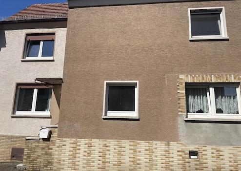 Zwei sehr helle Häuser auf einem Grundstück. Kleiner, auch für Kinder ausreichender Garten auf der Südseite. Garage für zwei Autos. Freundliche und hilfsbereite Nachbarn. Großes Vordach vor der Garage. Halbe Dachbodenhälfte isoliert, aber nicht ausgebaut. Dach ist in Bieberschwanz eingedeckt und dicht, Balken sind im sehr guten Zustand. Gesamtes Gebäude unterkellert. Keller ist sehr groß und hoch ausgelegt. Gebäude wurde 2018 straßenseitig bis zum Grundfundament ausgebaggert und durch eine Sperrbetonschicht abgedichtet. Der Keller ist (pups) trocken, die erste und zweite Etage bestehen aus Betondecken. Die Straße und Kanalisation wurde 2018 erneuert. Alle Fenster sind Doppelverglast mit Rolladen.