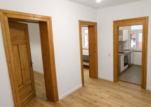 Die Wohnung wurde jüngst grundlegend saniert und wird nun erstmalig vermietet. Neu gemacht wurden u.a. die Küche, das Bad und sämtliche Böden (Parkett). Dieses Jahr erfolgt noch der Einbau neuer Fenster.