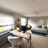 - Badezimmer gefliest, mit Dachfenster, Waschbecken, Rain-Dance Dusche, Handtuchheizkörper, WC