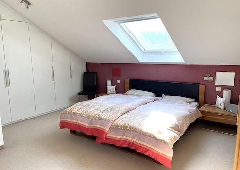 - Großzügiger Raum mit Teppichboden und offener Deckenhöhe bis zum Giebel.
