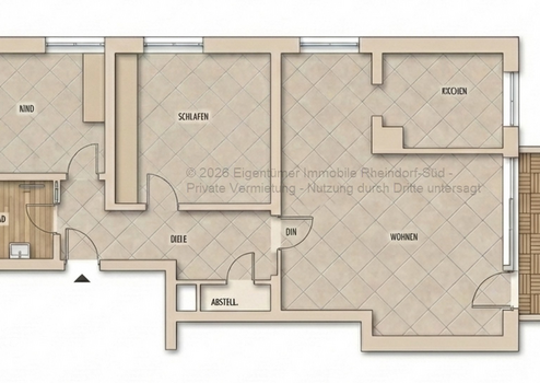 Da die Wohnung bisher vom Eigentümer selbst bewohnt wurde, befindet sie sich in einem hervorragenden Zustand auf Eigentumsniveau. Die Wohnung ist modernisiert und wurde zur Vermietung frisch renoviert, inklusive moderner LED-Beleuchtung und neuer Bodenfliesen in der Küche, und ist somit vollständig bezugsfertig.