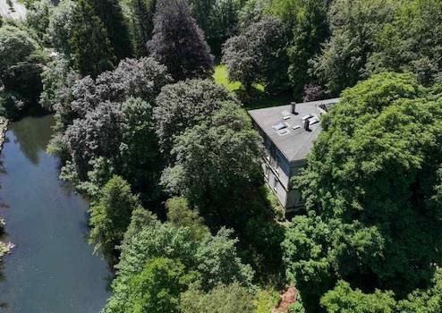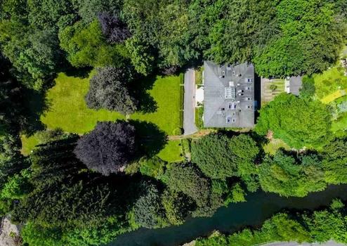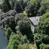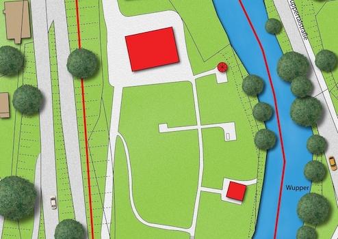 Das knapp 1 Hektar große Grundstück ist kaum einsehbar und besteht aus einer wunderschön angelegten Schlossparkanlage und einem anschließenden begrünten Baugrundstück. Es erschließt sich dem Besucher über eine lange, befriedete Auffahrt, die seitlich durch den gepflegten Park und Garten führt. Das Grundstück grenzt zur einen Seite an den Fluss, über ein paar Stufen haben Sie so einen direkten, ganz privaten Zugang zur Wupper.