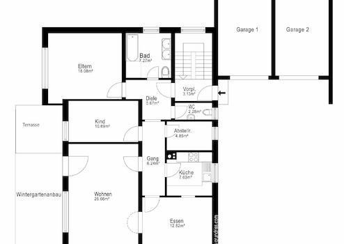 * Zwei Garagen mit direktem Zugang zur überdachten Einfahrt