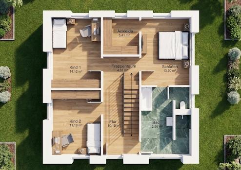 Wir bauen individuell für Sie, deshalb sind Bilder und Grundrisse Beispiele und Gestaltungsideen und können evtl. Anbauteile, Carports, Balkone, Gauben usw. zeigen, die nicht im Angebotspreis enthalten sind. Änderungen und Irrtümer vorbehalten.