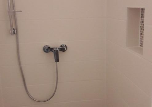- Bad mit WC und ebenerdiger Dusche sowie ein Abstellraum mit eigener Tür im Bad gegenüber der Dusche