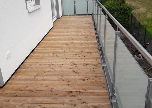 Balkon geht über die komplette Breite ca. 9m und ist zugänglich vom Schlafzimmer und vom Wohnzimmer.