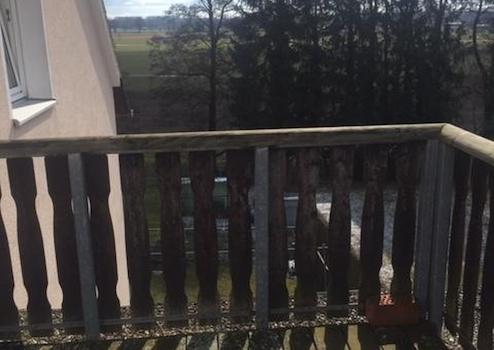 In ruhiger Siedlung mit Anliegerverkehr. Unverbaubarer Blick ins Grüne von zwei Balkonen aus ins Ried.