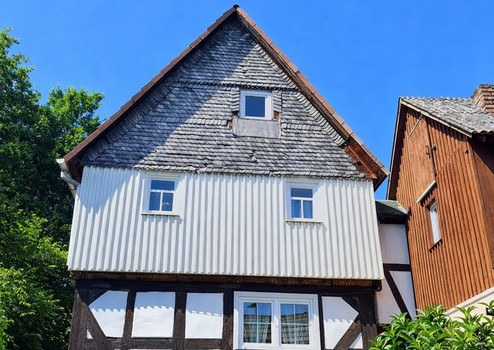 Charmantes Fachwerk-Einfamilienhaus mit Innenhof, überdachter Terrasse & Garage in Lohra