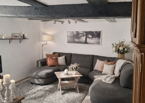 - Großzügiges Wohnzimmer mit Fachwerkdetails