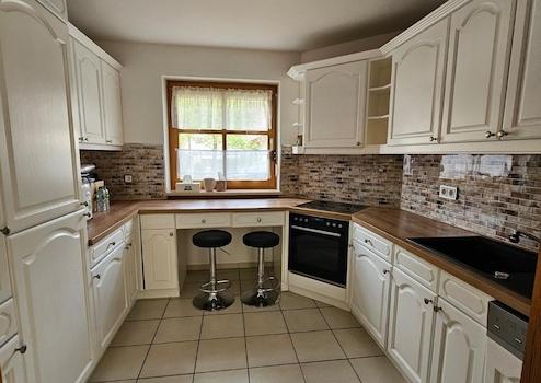Bausubstanz & Energie: Ziegelbau, Unterkellerung, Erdgas mit Fußbodenheizung EG/Bad 1. OG, Holzküchenofen 2023 mit Backofenfunktion, Echtholzfenster, helles Laminat/helle Fliesen, renovierte Einbauküche mit neuen Herd/Backofen/Waschbecken/Arbeitsplatte