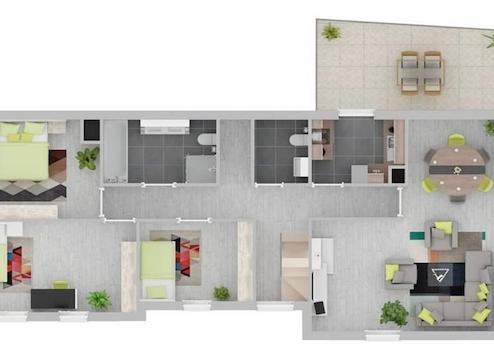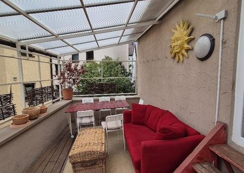 Ein besonderes Highlight ist die große Terrasse, die zum Entspannen einlädt. Zusätzlich kann der Gartenbereich mit Sitzgelegenheiten genutzt werden.