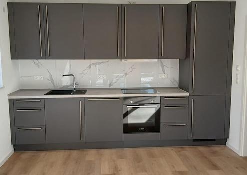 -Voll ausgestattet (Kühl-/Gefrierkombination, Einbauherd mit Induktionskochfeld, Backofen, Dunstabzugshaube, Geschirrspüler)
