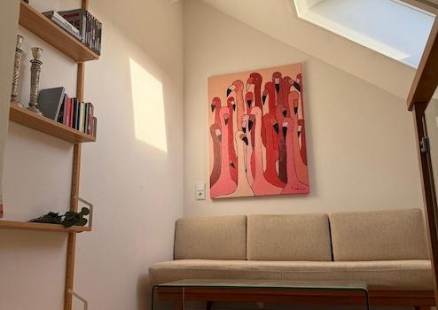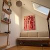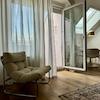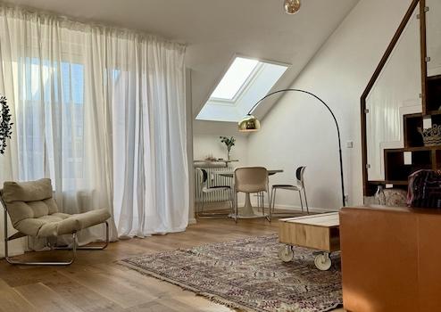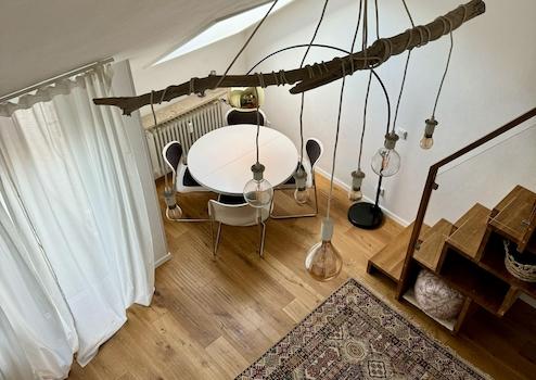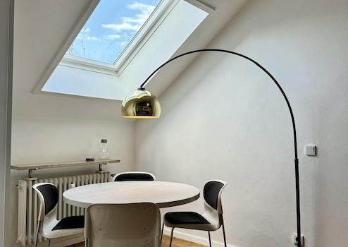 Auch die Ausstattung und das Mobiliar ist einzigartig und ein Mix aus Alt und Modern. Neben Antiquitäten und zeitlosen Elementen wie dem Tulip-Esstisch aus den 70ern finden sich kuschelige Wohlfühlplätze an jeder Ecke der Wohnung. Trotz des Dachgeschosses ist es auch im Sommer angenehm kühl, da alle Fenster mit Rollläden oder Verdunkelungsmarkisen an den Dachfenstern versehen sind.