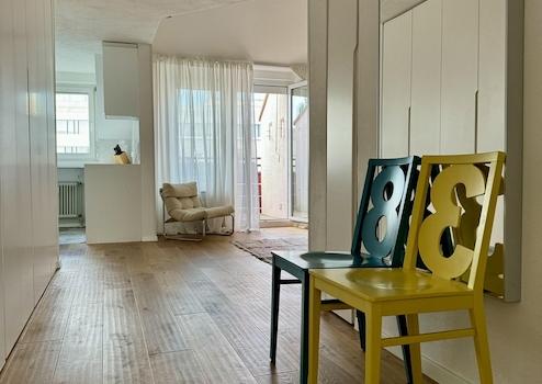 Die 4,5 Zimmer Penthouse-Wohnung liegt im 5. und 6. Stock mit Aufzug und ist bis ins letzte Detail innenarchitektonisch und im Design durchdacht.