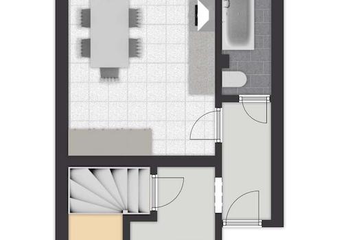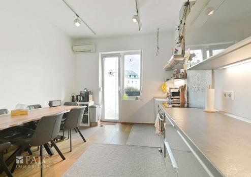 Im Erdgeschoss befindet sich ein modernes Bad und die große Küche mit moderner und komplett ausgestatteter Design-Einbauküche und schönem Sonnenbalkon: Das ist mal eine richtige Wohnküche! Gleich nebenan das helle Büro mit der Treppe nach oben ins gemütliche Wohnzimmer. Das Obergeschoss überzeugt darüber hinaus mit großem Schlafzimmer und dem zweiten Badezimmer!