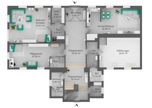 Realisierung von bis zu drei unabhängigen Wohneinheiten mit flexibler Nutzung als Vollvermietung, Teilvermietung oder Kombination mit Eigennutzung