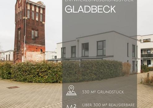 Das Grundstück liegt im Herzen Gladbecks im Quartier „Am Roten Turm“. Hier entstand auf historischem Grund ein modernes Wohngebiet rund um den denkmalgeschützten Wasserturm des ehemaligen Schlachthofgeländes.