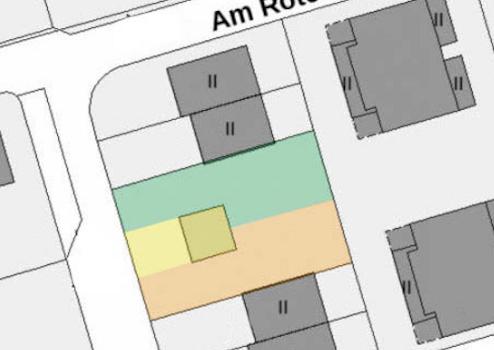 Insgesamt können über 300 m² Wohnfläche realisiert werden. Hierzu liegen verschiedene Planungskonzepte vor – z. B. die Bebauung zweier Stadthäuser nebst Wohnung oder drei separate Wohnungen.