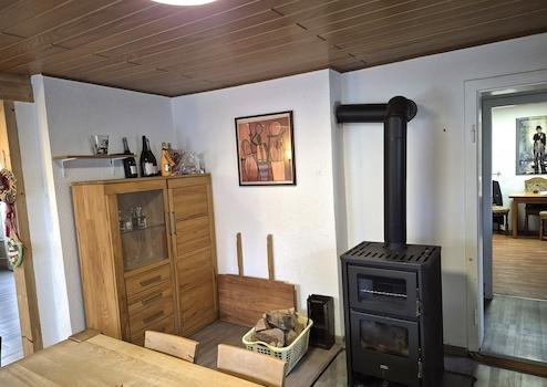 Die Wohnräume mit ca. 150 m² Wohnfläche sind hell und großzügig. Geheizt wird sowohl mit dezentralen Holzöfen, als auch mit einer Öl-Zentralheizung von Buderus aus 1990 (Öl-Tankanlage mit 4 × 1000 Liter Kunststofftanks). Die Fenster stammen aus unterschiedlichen Baujahren, ebenso die Dacheindeckungen.