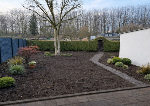 Direkt angrenzend an eine Kleingartenanlage bietet die Umgebung viel Grün und eine besonders angenehme Wohnatmosphäre. Spaziergänge, Erholung und Natur befinden sich somit direkt vor der Haustür.
