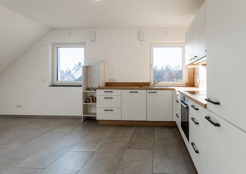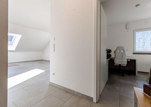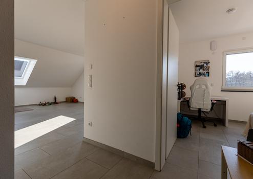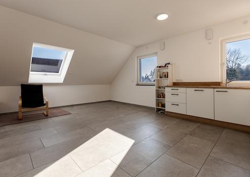 Die Wohnung liegt im Dachgeschoss eines nahezu neuen Mehrfamilienhauses in Langenneufnach.