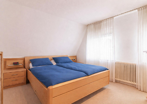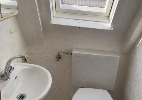 Im Obergeschoss befinden sich 2 Schlafräume sowie ein separates WC mit Waschbecken.