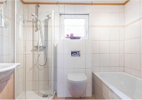 - Tageslichtbad mit Dusche und Badewanne, Waschbecken, WC