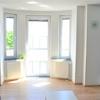 Die großen Fenster, harmoniert mit den hellen Laminatboden und den weißen Wänden,