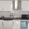 Die offene Markenküche mit Einbaugeräten ist komplett ausgestattet und schafft ein