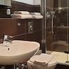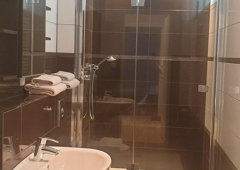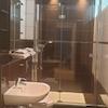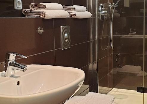 Das elegante Bad ist mit einer großen Dusche und WC ausgestattet.