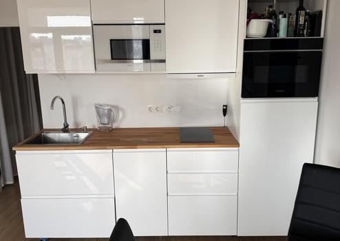 Ein-Zimmer-Appartement hat einen kleinen Balkon in Südausrichtung und ist mit neuer Küchenzeile und hochwertigen Markengeräten ausgestattet. Das separate Bad ist komplett gefliest und hat eine ebenerdige Dusche.