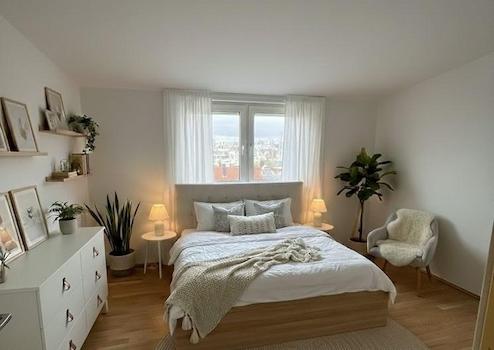 Hinweis: Die dargestellten Bilder vom inneren der Wohnung sind KI-generierte Visualisierungen. Da sich die Wohnung aktuell noch in der Bauphase befindet, dienen die Abbildungen ausschließlich zur Veranschaulichung der möglichen Raumwirkung und Einrichtung. Die Wohnung wird nicht möbliert vermietet.