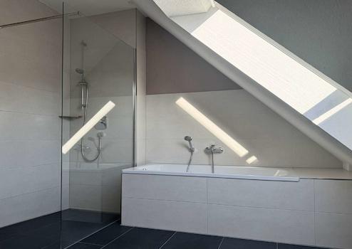 * Tageslichtbad mit Wanne und ebenerdiger Dusche
