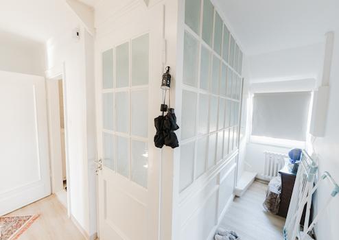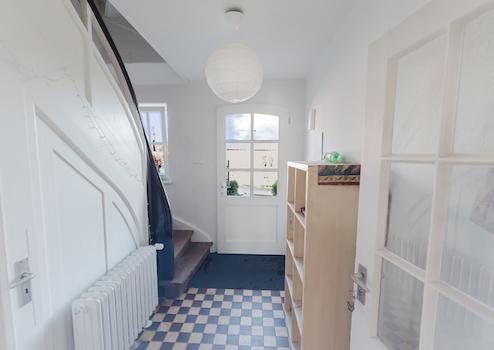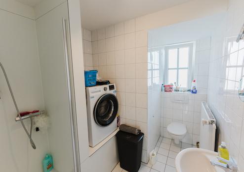Die Hauptwohnung im Erdgeschoss bietet drei Zimmer, Küche mit Einbauküche, Badezimmer, Abstellraum sowie eine Terrasse. Die Deckenhöhe von ca. 2,70 m sorgt für ein angenehmes Raumgefühl.