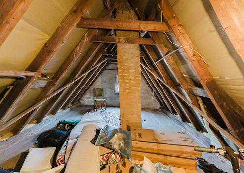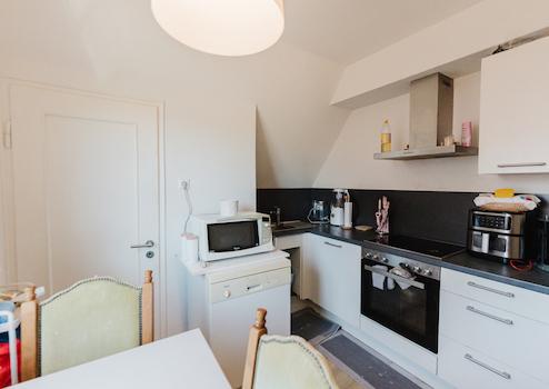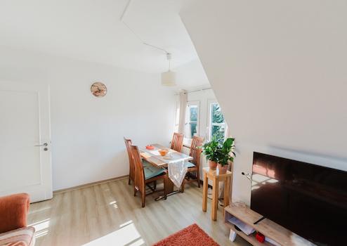 Im Dachgeschoss befindet sich die zweite Wohneinheit mit vier Zimmern, Küche mit Einbauküche, Badezimmer und Abstellraum. Zusätzlich steht ein Dachboden zur Verfügung, der über eine feste Treppe erreichbar ist und weiteres Ausbaupotenzial bietet.