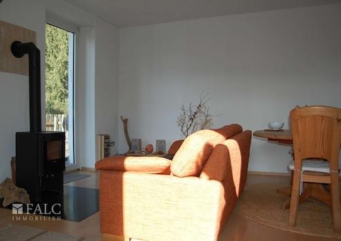 Das lichtdurchflutete Wohn- und Esszimmer bietet Ihnen ein gemütliches Plätzchen mit direktem Zugang zum südwestlich liegenden Balkon. Hier können Sie entspannte Stunden im Freien genießen. Ein zusätzlicher Pluspunkt ist der Kamin im Wohnzimmer, der Sie an kalten Tagen mit wohliger Wärme versorgt.