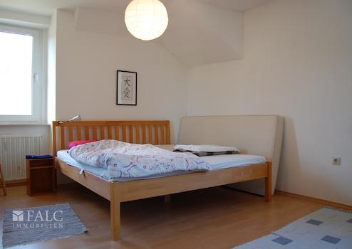 Im Schlafzimmer ist genügend Platz für einen großen Schrank und ein Bett.