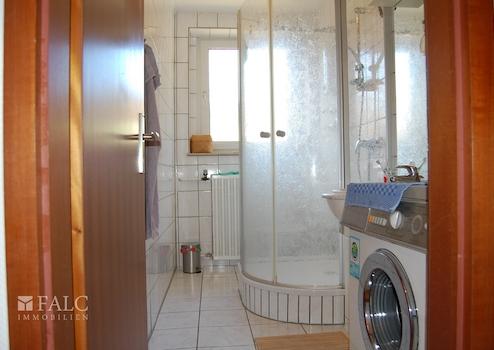 Das Badezimmer ist deckenhoch weiß gefliest und mit einer Dusche, einer Toilette sowie einem Waschbecken ausgestattet. Auch Ihre Waschmaschine findet hier Ihren Platz.
