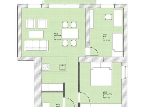 Das Angebot bezieht sich auf die Wohnung 8 im Obergeschoß des Hauses 20 c. Die Wohnung besteht aus dem attraktiven Bereich Wohnen/Essen/Kochen von ca. 39 m² mit Zugang zum sonnigen Balkon von ca. 10 m². Der Küche ist der Hauswirtschaftsraum zugeordnet. Über den Wohnraum erreichen Sie das schöne Kinderzimmer/ Büro von ca. 12 m² sowie das geräumige Elternschlafzimmer von ca. 14 m². Das Gäste-Duschbad sowie das moderne Bad mit einen großen flachen Dusche (wahlweise Badewanne). der Abstellraum sowie die Diele mit Garderobe vervollständigen das Angebot. Die Wohnfläche beträgt ca. 82 m² .