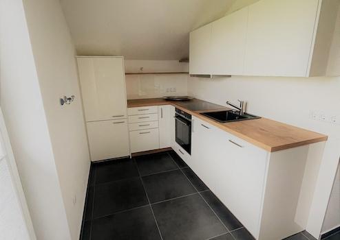 Eine stilvolle Einbauküche mit Bora-Geräten ist im Mietpreis inbegriffen. Die Wohn- und Schlafzimmer sind mit Echtholzparkett verlegt.
