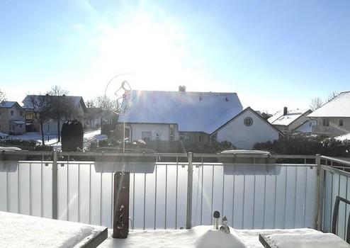 großzügiger Balkon mit herrlichem Blick in den Garten, privater Treppe in den Garten, schattenspender Markise und exklusivem Glassichtschutz