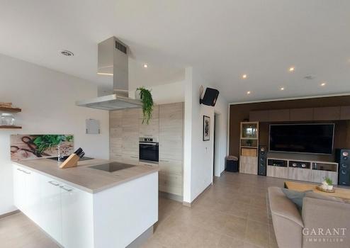 Der offene Wohn- und Essbereich im Erdgeschoss bildet das Herz des Hauses. Große Fensterflächen sorgen für viel Tageslicht und schaffen eine angenehme Wohnatmosphäre. Die moderne Einbauküche fügt sich harmonisch in den Raum ein und wird schnell zum Mittelpunkt des Familienlebens. Von hier aus gelangen Sie direkt auf die sonnige Terrasse und in den liebevoll angelegten Garten.