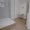 Der Boden ist mit einem hochwertigen Eichen-Vinylboden ausgestattet: modern in der Optik, robust, pflegeleicht und für Fußbodenheizung geeignet.