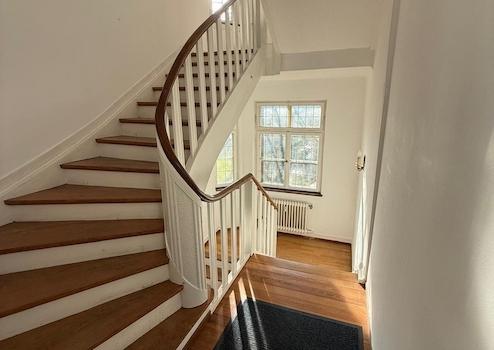 Freistehende historisches Gebäude mit 3 Wohneinheiten, sehr helle Dachgeschosswohnung, 3,5 Zimmer, Küche, Bad, WC, Flur, Kellerraum, große 20 qmGarage, PKW-Stellplatz, eigener Gartenanteil, Blick zum Schloss und auf die Nachbarparks.